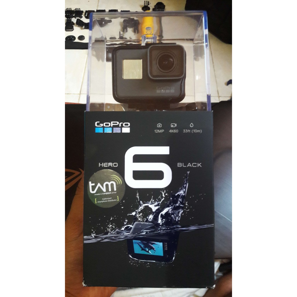 2 telesin waterproof housing 3 sp gadget floating stick 4 hero 8 battery 5 gopro original usb c cable new 6 curve mount 7 gopro sticker free. Jual gopro hero 6 black baru kota malang kondisi masih dalam box belum di buka 100 new spesifikasi sudah bisa record video 4k 60 fps foto 12 megapixels lensa glass ultra wide angle 10 meter tahan air terdapat perintah suara lcd touchscreen wi fi untuk control dan monitoring interval capture. The hero 6 measures 2 44 x 1 75 x 1 26 inches as the hero 5 before it and it weighs a mere 4 16 ounces needless to say the nimbleness of the camera is a plus. Vendor ternama untuk action cam yang satu ini terus melakukan inovasi dalam setiap produknya salah satunya dalam balutan generasi gopro hero 6.