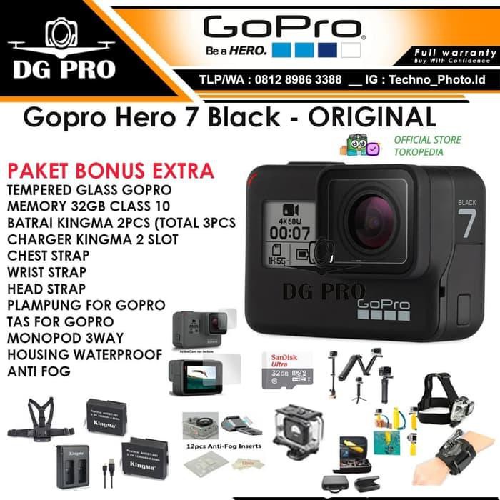 Ready special new gopro hero 7 go pro hero 7 12mp 4k 60fps blackrp3 939 000. Cari produk action camera lainnya di tokopedia. But the same was n t available in the packet received copy of relevant portion is appended below brand gopro model chdhx 701 the model year 2018 item weight 118 g. Jual gopro hero 7 black paket bonus 11 item gopro hero7 black tidak paket dengan harga rp4 075 000 dari toko online dg pro jakarta pusat.