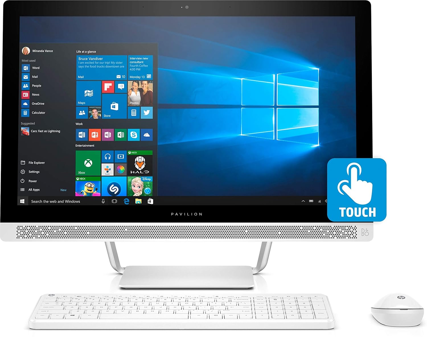 The hp all in one pc blends the power of a desktop with the beauty of a slim three sided borderless display for one dependable device designed to grow with you.