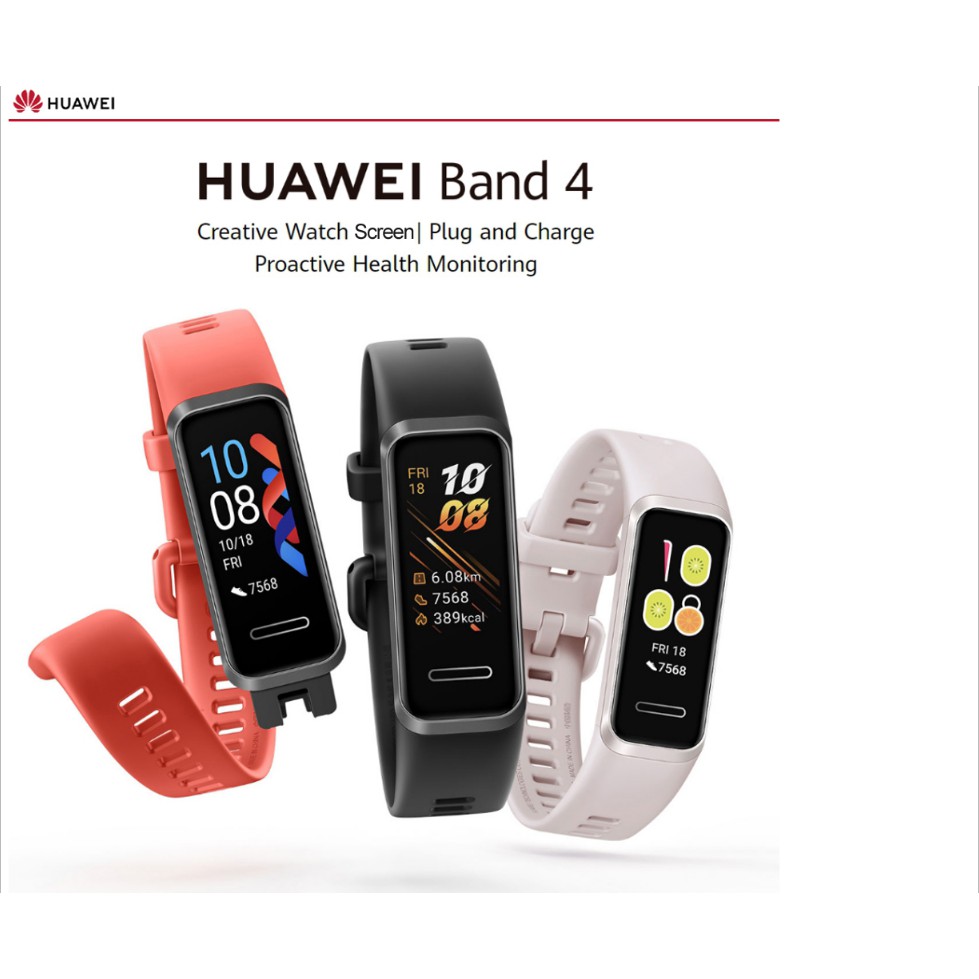 The 2 5d colourful touch screen offers you with the stunning visual experience engaging interface and smart message notification. Creative watch faces plug and charge feature proactive health monitoring ergonomic comfort masterful battery management more. Check out the full specs of huawei band 4. Easy charging longer usage.